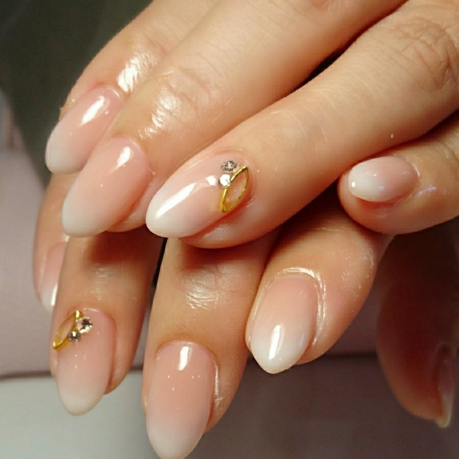 ハンド グラデーション ビジュー ベージュ ジェル Nico Gemのネイルデザイン No ネイルブック