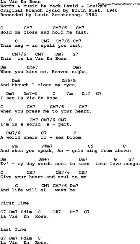 Chord La Vie En Rose Louis Armstrong Tab Song Lyric Sheet Guitar Ukulele Chords Vip